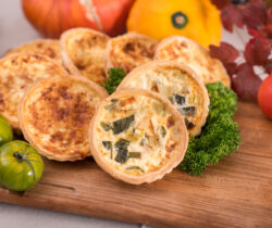 Oeufs de ferme, lait, beurre, quiche lorraine aux lardons, tourte aux poireaux et jambon, fondu parmesan, et en saison, oeuf à la russe et pêche au thon.